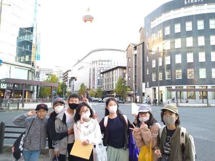 京都タワーをバックに