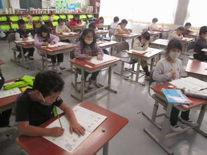 1組は書写、2組は生活科でつくったおもちゃのまとめ書き、3組は音楽の鑑賞です。