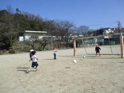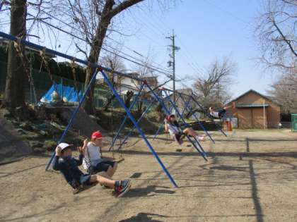 走った後は、サッカーを楽しむ子、ブランコを楽しむ子、