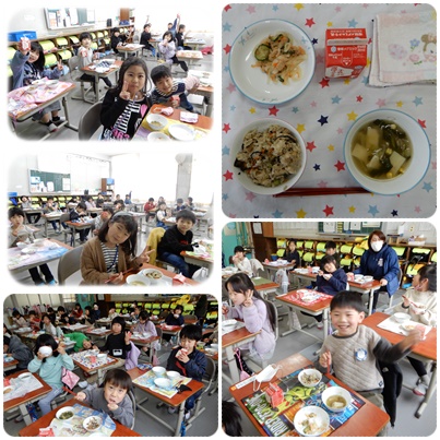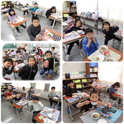 いただきます1 公開日 2021/03/12 更新日 2021/03/12 水南HP 給食の様子です。今日の献立は、ワンタンスープ、大根サラダ、中華ひじきごはん、牛乳でした。 土日に誕生日を迎える人を、皆でお祝いしました。 いいね(0)