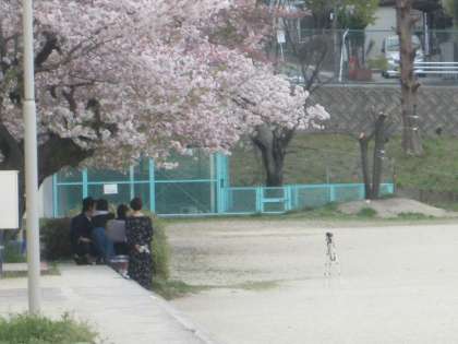 満開の桜の下、家族で記念写真です。心温まる光景で、見とれてしまいました。それと同時に、みんなの大きな希望に応えられるようにと改めて思った次第です。