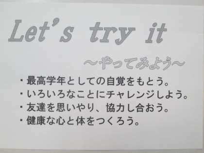 学年目標 公開日 2021/04/08 更新日 2021/04/08 水南HP 6年生の朝は、学年集会。 学年主任から、学年目標についてのお話です。 最高学年だからこそ、いろんなことにトライしてほしいという担任団の思いが伝わってきました。 いいね(0)