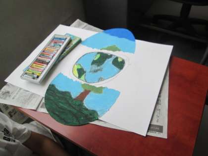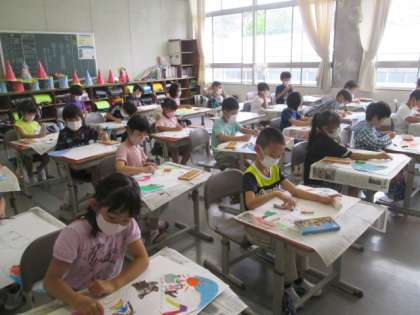 2年の図工です。たまごをわると何が出て来るかな? 自然を大切にすることで維持できる地球。元気いっぱいな自分。…。いろんな卵が垣間見ることができました。