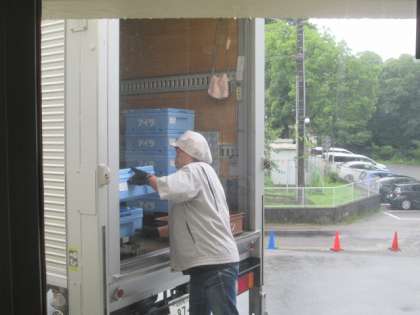1時間目の途中にご飯が配送されました。全部で80kgを超えるほどです。これが市内の学校にも配られると思うと、大変ですよね。そして今日のように雨の中だと余計に…。