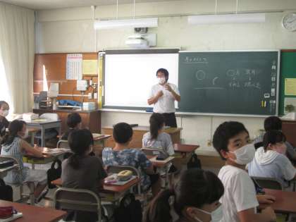 6年の理科は月の観察について。ちょうど一昨日、十五夜に花火でいい光景でしたね。