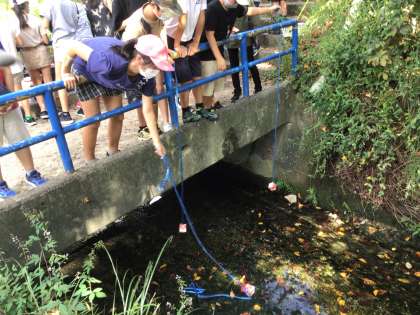 5年生の総合的な学習の時間です。CODパックテストを使用して湧き水と川底の水の汚れを調べました。検査結果の違いにみんな興味津々でした。