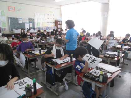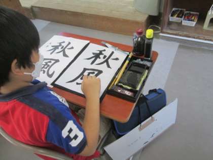 5年生の尾書研コンクールの字は「秋風」。台風の通過でこのまま秋になればいいのですが…。