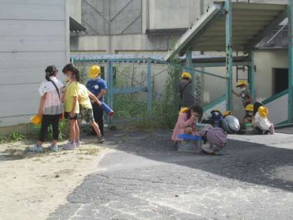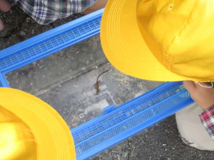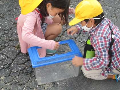 昨日の虫取りの様子です。いろいろな生き物を捕まえていました。