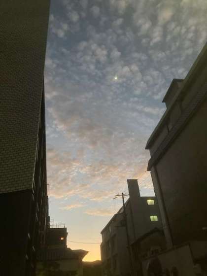 下から太陽に照らされたお月さんです。もうじき主役の交代です。