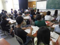 2年のマメナシ学習は、お気に入りの木の紹介。前回調べたことを木の前で発表です。