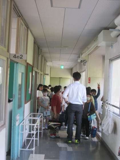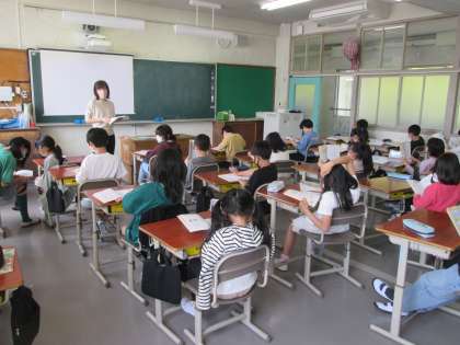 1組は絵しりとり。2組は1年の見通し。3組は、習字道具などを保管場所へ持って行くところです。