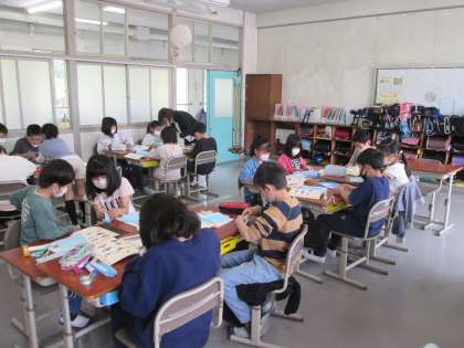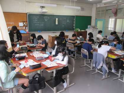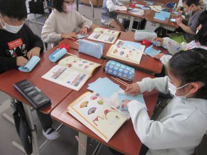 角度の学習に入った42組。折り紙で角の大きさを見える化する道具の作成です。