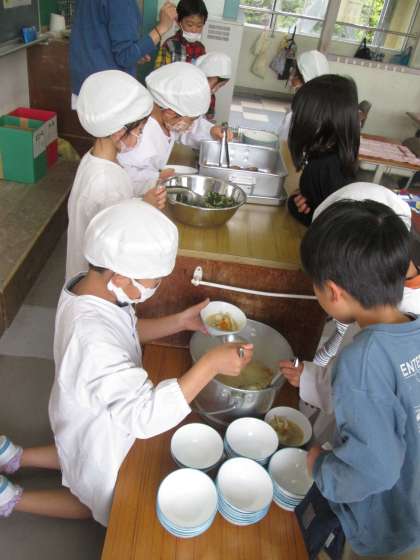 給食の準備 公開日 2023/04/19 更新日 2023/04/19 水南HP 1年生の給食の準備です。頑張って一生懸命よそっているのが伝わってきます。みんなで準備し、みんなで食べるから、余計おいしくなるんでしょうね。給食は。 いいね(0)