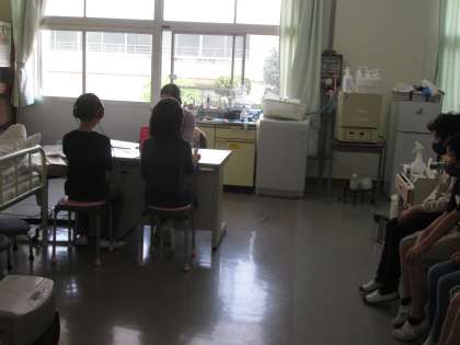 今日でおしまいの聴力検査は6年生。ホッと一息つくまもなく、明日からは視力検査が始まります。