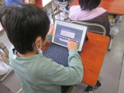 全校で取り組むことになった「コグトレ」。今朝は2年生がタブレットでできるように操作をしていました。自分の苦手分野を遊び感覚で鍛えられるといいなと思います。