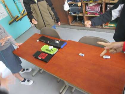 男の子には人気な遊びです。机の高さの違いをうまく利用して遊んでいる3年生です。