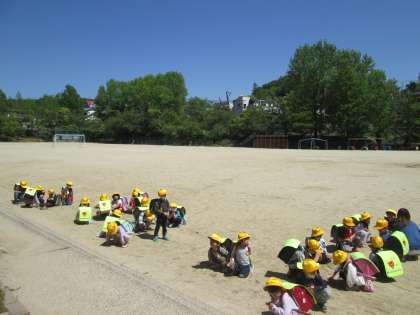 雲一つない青空の下、1年生の下校です。給食を食べて帰るのも残すところあと3回です。