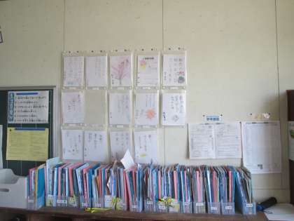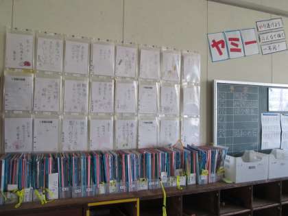 国語で作った俳句が掲示されている62組。学級目標の「ヤミー」誕生のいきさつが知りたくなりませんか?