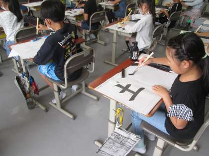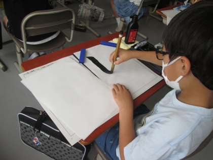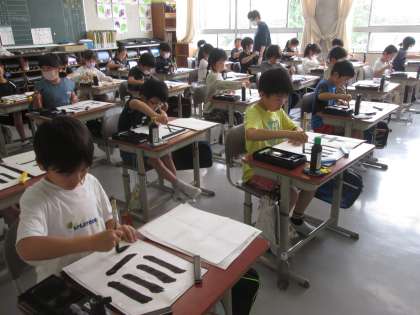 3年の習字は、筆の入りと止めの練習です。切れのいい筆遣いが増えてきました。