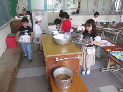 1年生の準備の様子です。手際が良く、教員が手伝わなくても10分ほどで準備できるまで育っていることにビックリです。