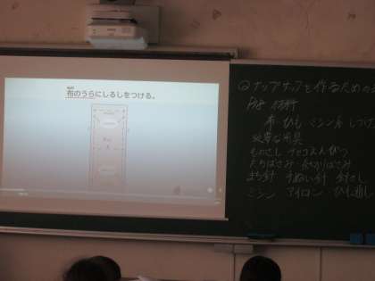 62組はナップサックの作り方の授業です。15日(金)のボランティアのサポートの元、作り始めます。