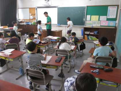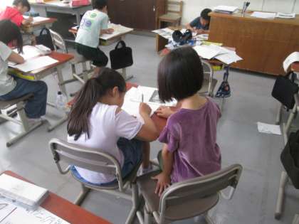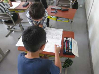 校外学習のまとめです。まだ完成していない子を手助けしている33組です。
