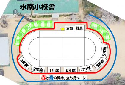なお、演技中で児童席が空いている場合は、児童席で参観しても結構です。