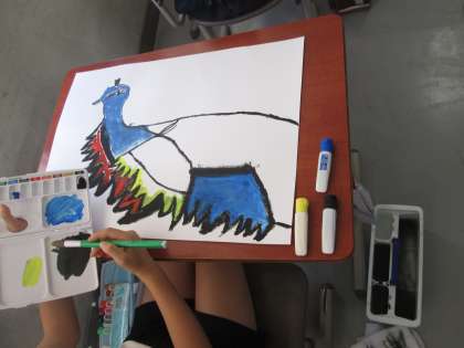 3年の読書感想画の本は「くじゃくの花火」。それぞれどんな場面を描きたかったのかな?