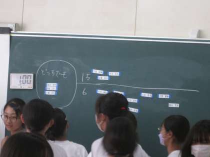 6年の修学旅行の部屋決めです。6人部屋と15人部屋、どっちにする?で、始まったのですが、途中、「どっちでも」という項目が登場。頭の柔らかさに感心です。その後、話し合いが進み、「どっちでも」がなくなりました。