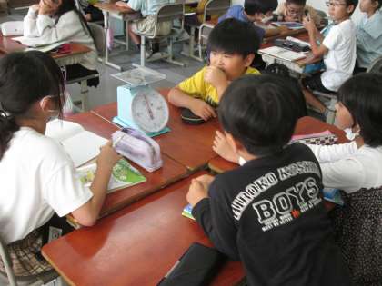 はかり 公開日 2023/10/05 更新日 2023/10/05 水南HP 3年の算数は重さについて。今日は、はかりを使って身近な重さを量ります。写真の班は、みんながはかりを見やすい位置に置くことを気にしていました。みんなのことを思いやれるメンバーって素敵ですよね。 いいね(0)