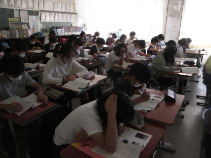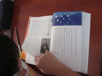 6年の国語は「やまなし」。宮沢賢治の世界です。今日は宮沢賢治ってどんな人かを学んでいました。