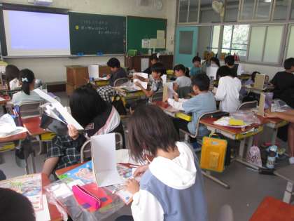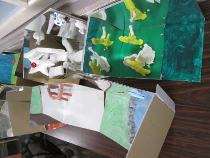10/13 ミラクルミラーステージ 公開日 2023/10/16 更新日 2023/10/16 水南HP 5年の図工です。銀紙の反射を生かした作品作りです。どこに何を貼り付けるかで見える景色が変わってきます。 いいね(0)