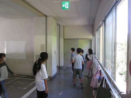 4時間目に図工室に皿を取りに行った4年生。3階に上がったときにちょうどシャッターの開く音。普段は教室にいるため、給食のワゴンが運び出されてくる場面を見たことがありません。興味津々にみんなが集まりワゴンのお出迎えです。