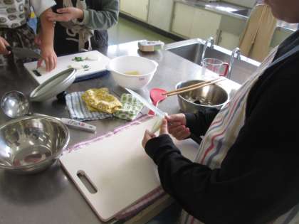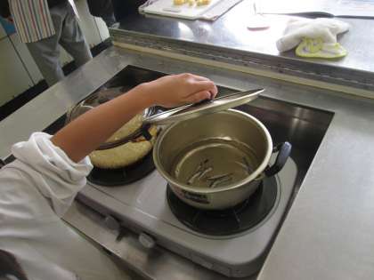 5年生の調理実習は、ご飯と味噌汁。煮干しを味噌汁としての具として食べる班とそうでない班がありました。