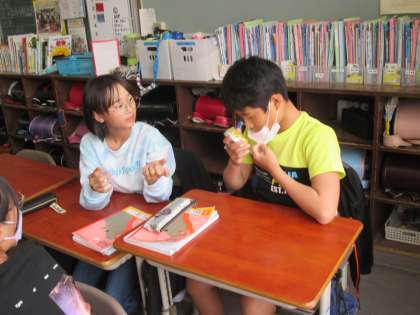 廃油から石鹸を作っている6年生。公民館まつりに交流できる韓国の利川市では、廃油から石鹸を作って販売しているとのこと。公民館から貸してもらったので、紹介したら、どう作るのか興味津々。ハングルを訳したり、どう作るのかを調べたりと一気にヒートアップ。いろんな事に挑戦すると、いろんなとことつながるんですね。恐れ入りました。