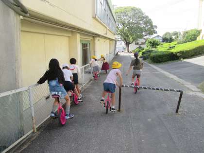 放課のたびに一輪車の練習をしています。その甲斐があってずいぶん乗れるようになりました。