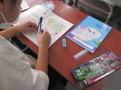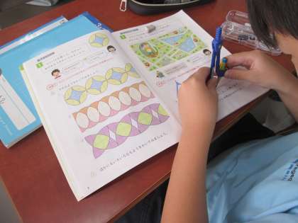 円を描く道具のコンパス。今日は距離の比べっこに使う道具の授業です。