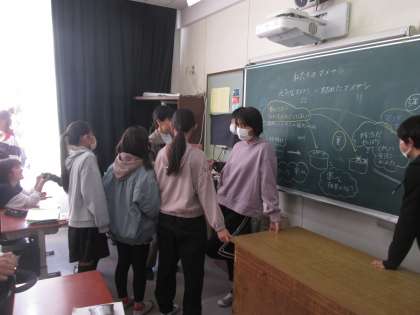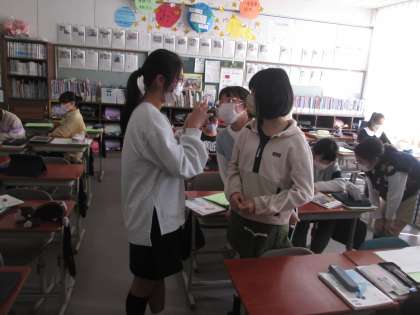 3時間目に決着がつかず、とうとう放課に。あちこちで自分の考えを話し合う姿も。一方、マメナシの苗を見に行く子も。