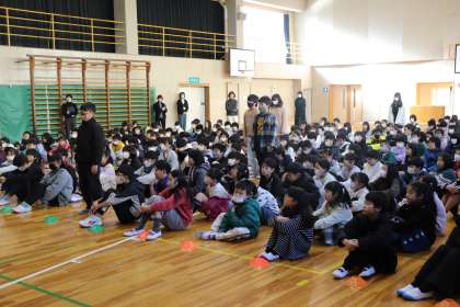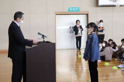 この朝礼のあと、6年生は卒業式練習を行いました。