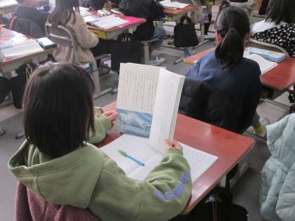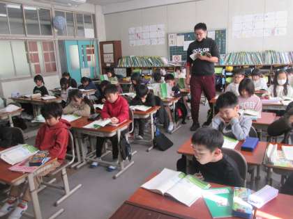 範読を聞いている2年生。スーホの白い馬の世界に浸っていきます。