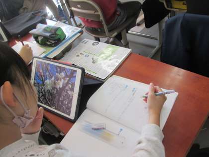春の特徴を見つけに行った4年生。春の特徴って、何でしょうか?