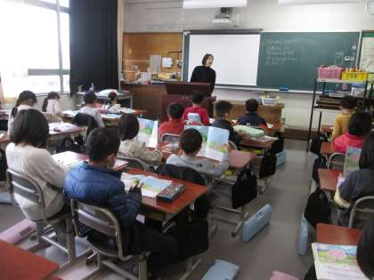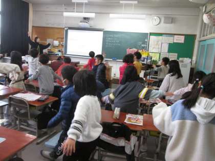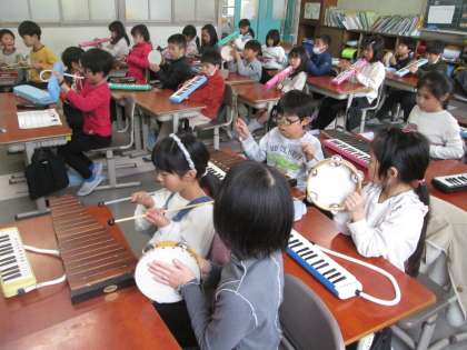 45分の中に踊りあり、歌あり、合奏あり。テンポ良く音を楽しんでいる2年の音楽です。
