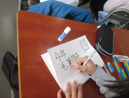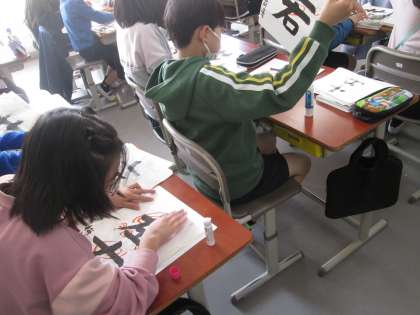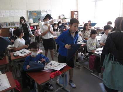 1年間、書いた習字を綴じて、作品集を作っている4年生。振り返ってみると字の上達が見えてくることでしょう。