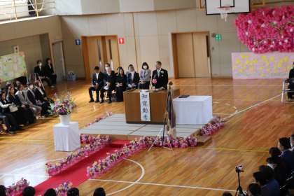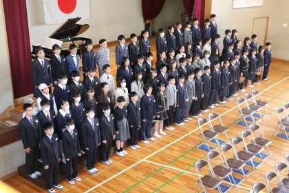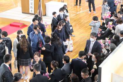 卒業生一人ひとりの旅立ちの言葉、小学校最後の合唱が、体育館に響きます。学年セレモニーの時間、保護者の方に感謝の言葉を伝えてフラワーアレンジメントを渡すときには、素敵な笑顔の花が咲きました。これから広い世界に羽ばたいていく卒業生のみなさんを、応援しています。本当におめでとうございます。