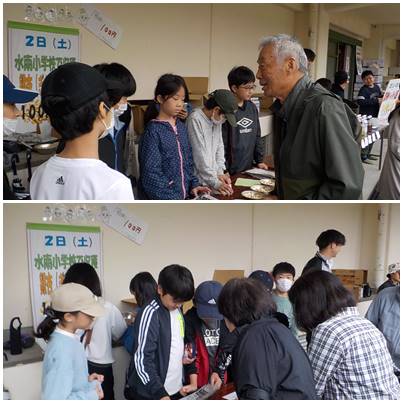 水南小児童の絵画作品、陶芸作品展示のほか、水南小SDGs解決プロジェクトによる銀杏販売なども行われています。
