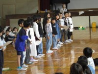 6年生の卒業を全校で祝う、送る会を行いました。どの学年も、お世話になった6年生に感謝の気持ちを伝えたい、6年生に楽しんでもらいたいという思いをもって、練習から熱が入っていました。そして迎えた今日、演技を披露することができました。歌の場面では、皆から自然と手拍子が起きるなど、会場全体が温かな雰囲気に包まれていました。写真は、6年生全体、運営する5年生、2年生、1年生、教員の演技の様子です。