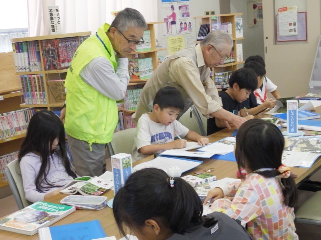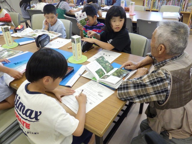 今回は、子ども自身が選んだ木について、特徴を調べてまとめる活動です。図鑑を手がかりに、木の大きさ、葉の形、実を付ける時期など、さまざまなことを調べていきました。マメナシ観察会の方々には、調べ方について支援していただくとともに、図鑑には載っていないことを教えていただき、子どもたちはさらに選んだ木について関心を深めた様子でした。