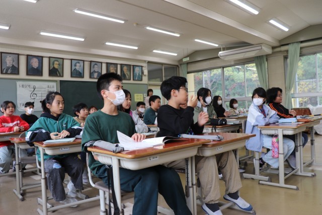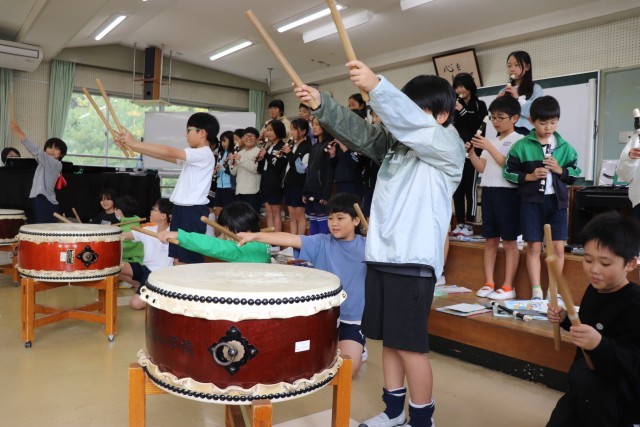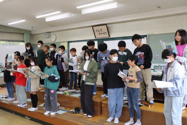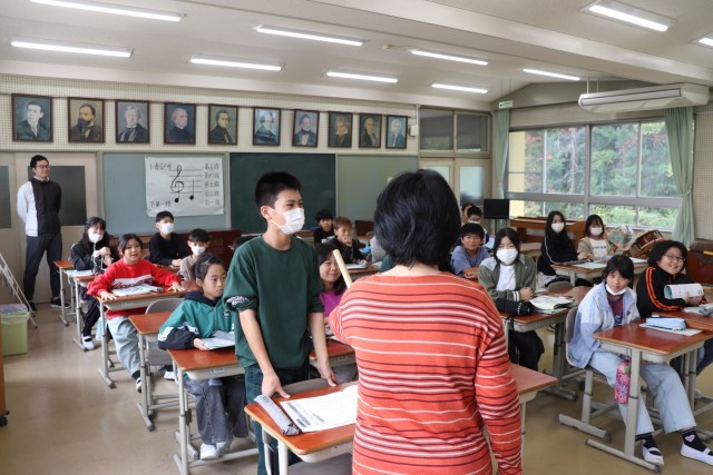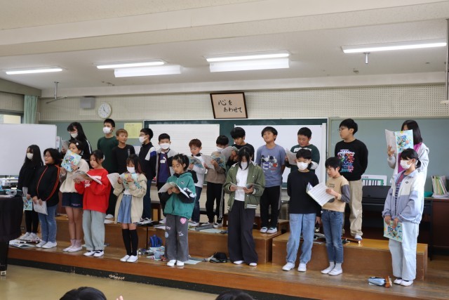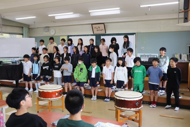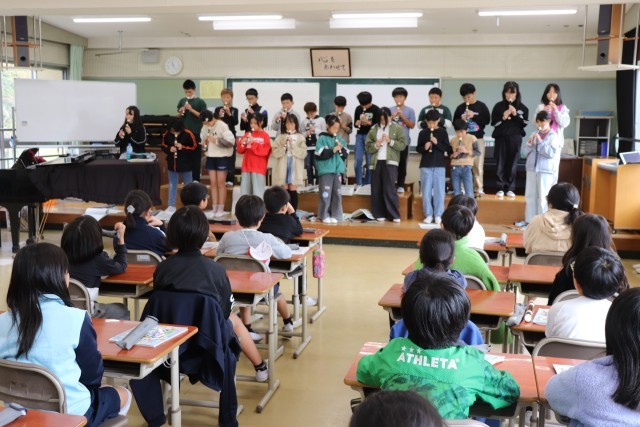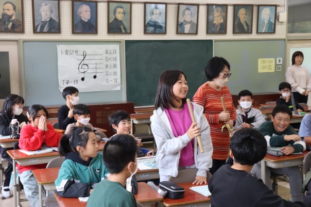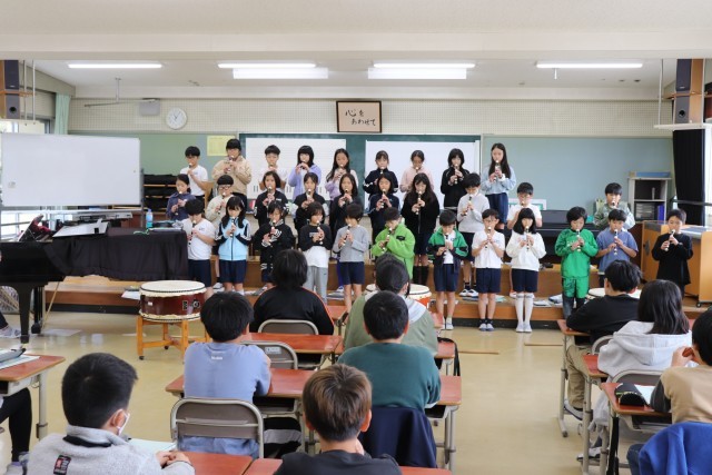 音楽 4年生と5年生のクラス 発表の聞き合い