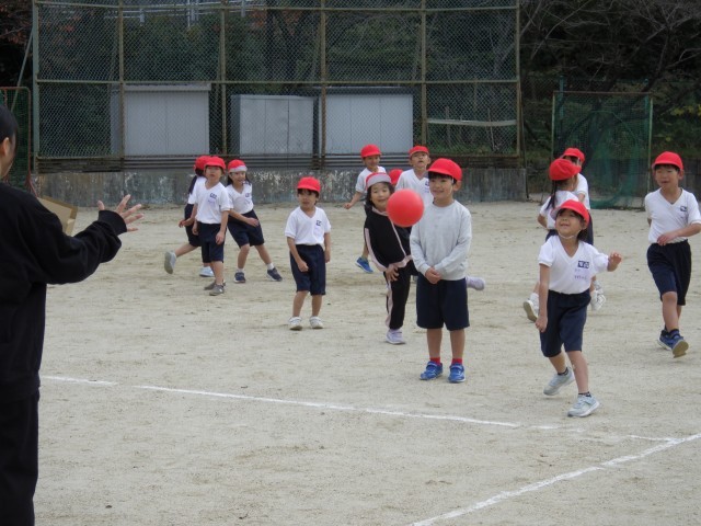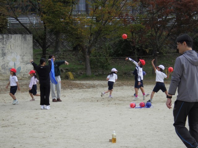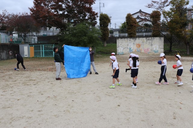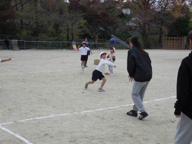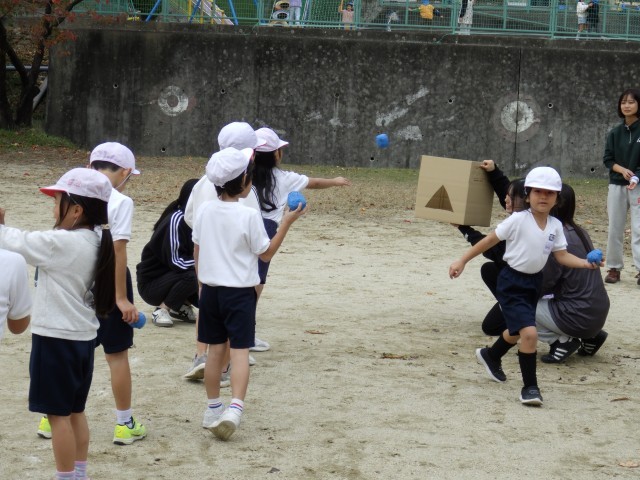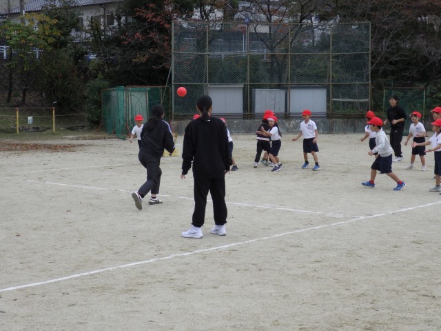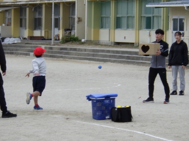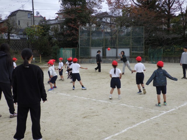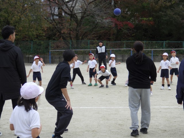 中京大学のお兄さん・お姉さんとの授業2回目。1年生のみんなは、授業の前から、とても楽しみにしている様子でした。いろいろな種類のボールをたくさん投げました。お兄さん・お姉さんが来てくれる授業もあと1回。1年生のみなさん、楽しみにしていてください。