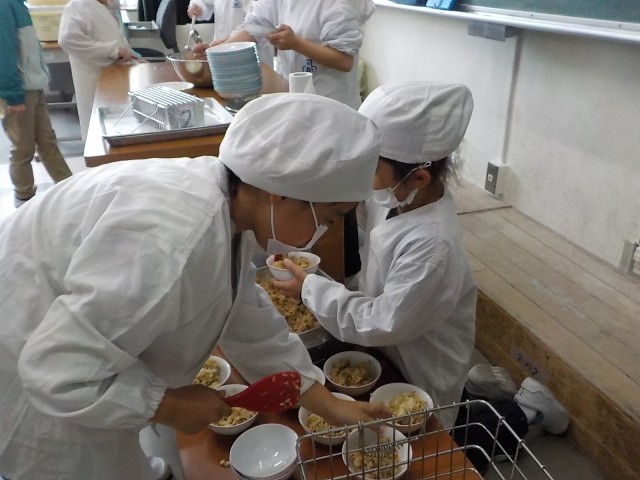 今日の献立は、じゃがいもののっぺい汁、切干大根サラダ、とりめし、牛乳。